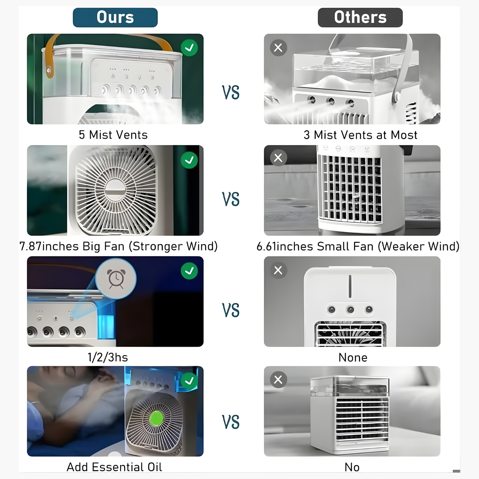 Unlike others, our Mini Air Cooler offers a blend of portability, energy efficiency, and multi-functionality, making it the smart choice for comfortable living without high costs.
