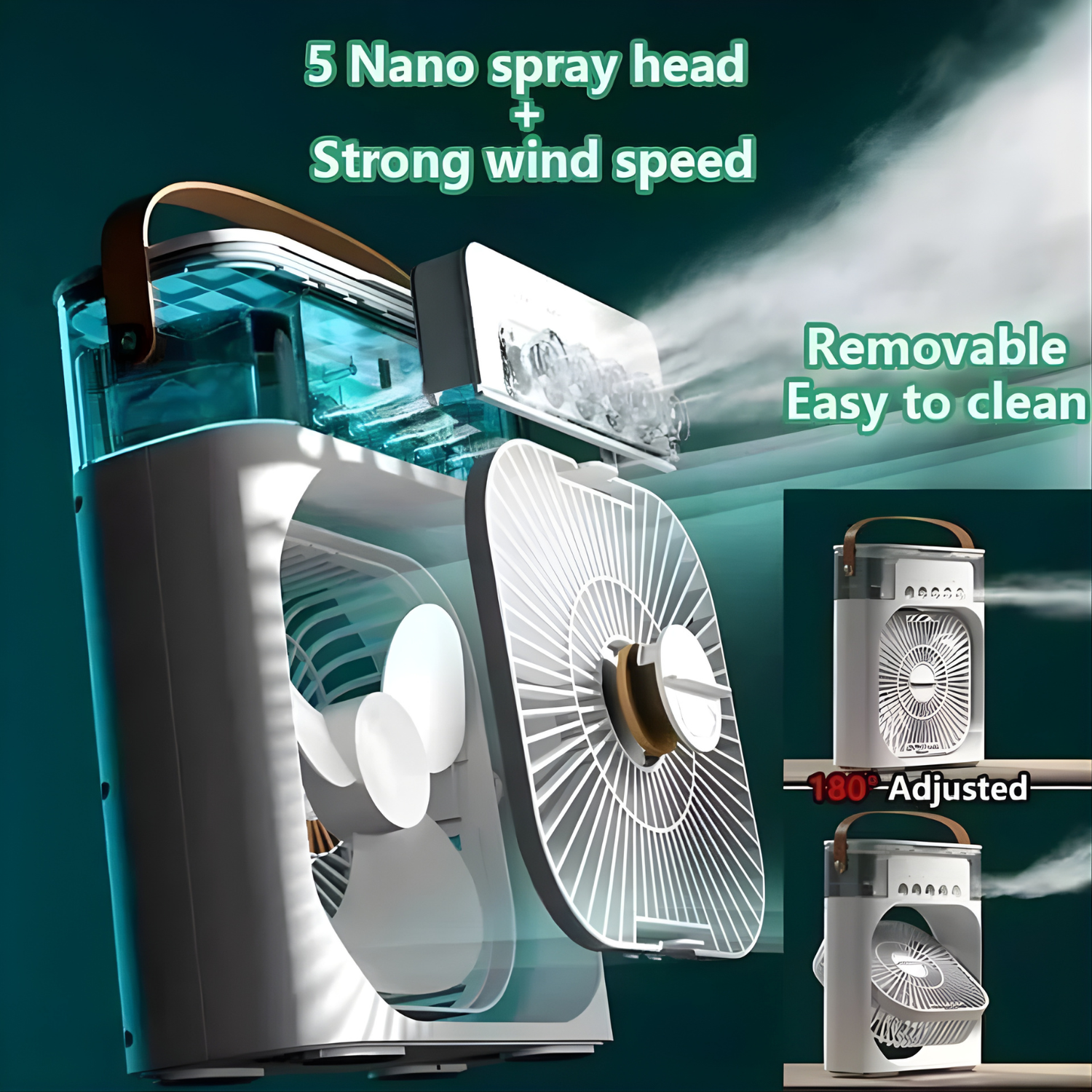 Escape the sweltering summer heat effortlessly with a portable air cooler that combines cooling, humidifying, and soft lighting. Enjoy a refreshing breeze and a calming atmosphere indoors or during outdoor activities.